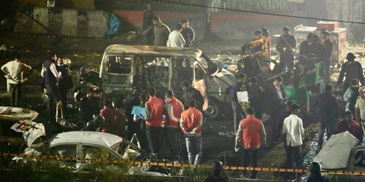 Menurut laporan dari kepolisian setempat, ledakan tersebut bersumber dari sebuah mobil Hyundai i20 yang bergerak lambat dan meledak di dekat lampu lalu lintas. Kekuatan ledakan sangat besar, hingga menyebabkan sejumlah kendaraan di sekitar lokasi, termasuk setidaknya enam mobil dan tiga bajaj, hangus terbakar. Kepulan asap tebal membubung tinggi ke udara, dan saksi mata menuturkan bahwa suara ledakan keras tersebut bahkan memecahkan jendela rumah-rumah di sekitarnya. Warga yang panik juga melaporkan melihat potongan tubuh berserakan di jalanan, menggambarkan betapa parahnya dampak ledakan.